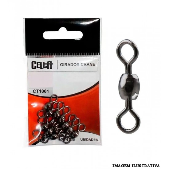 O Girador Celta Crane é um destorcedor de metal que apresenta muita resistência em sua fabricação. Confeccionado em metal resistente e muito útil em pesca com iscas artificiais que causam torção de linha como hélices e colheres por exemplo. E quando a opção for molinetes conhecidos por torcerem mais a linha que as carretilhas. Com acabamento niquelado negro, é usado nas mais diversas montagens como pargueiras, chicotes de praia, pesca com iscas artificiais, pesqueiros entre outras.